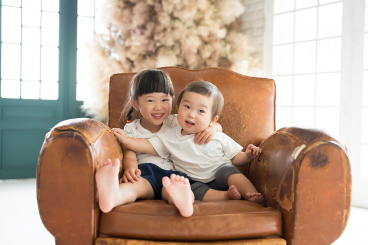 すっかり撮影に慣れているお姉ちゃんが、最初は場所見知りからか泣けてきちゃった弟くんに見本を見せてくれたおかげで、弟くんもバッチリ撮影ができました。
