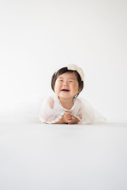 1歳前後のお子さんのバースデーフォトはお子さんのペースに合わせられる70cutのプランがおすすめです