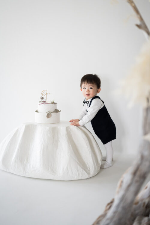 1歳男の子のファーストバースデーを記念してアトリエで撮影させていただきました